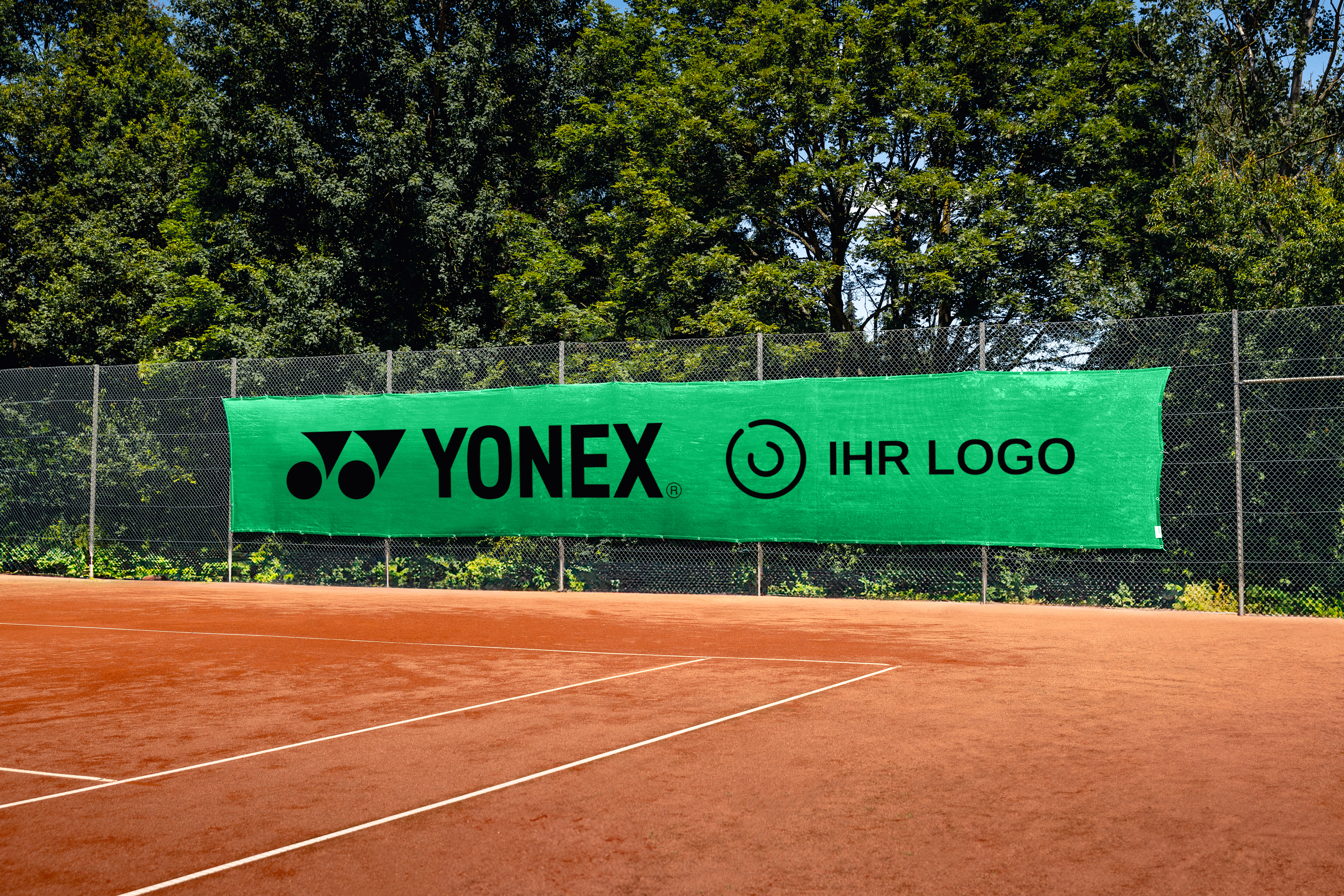 Mit einem zeitlosen Design des YONEX Logos kann jeder Tennisplatz mit einem prominenten Sponsor geschmückt werden. Ob als Sichtschutz oder als Tennisplatzverschönerung, die klassische YONEX Tennisblende passt zu jedem Tennisplatz. Ergänzen Sie die Bande mit dem für Sie passenden Buchstabenpaket. Während der Produktion kann eine Maßtoleranz von 3-5% auftreten!